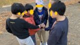 荷物を置いているところで集まって「あっちむいてホイ大会」開催。