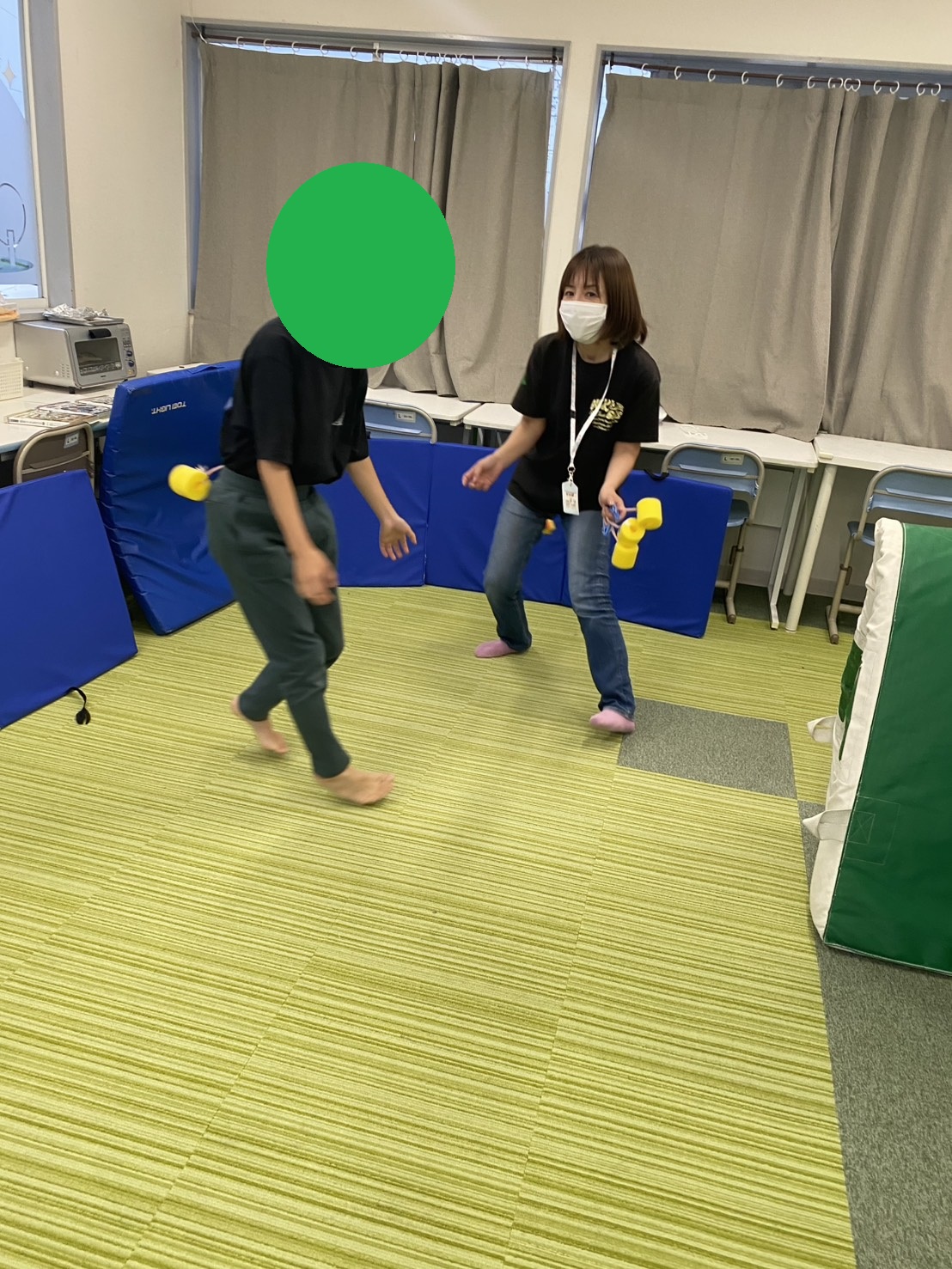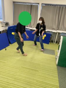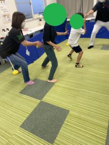 今日の療育はお休みですが、そんな新メンバーもはいったところで、室内でしっぽとり鬼をしましたよ!