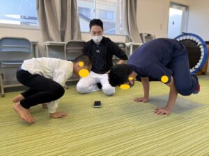 今日とび箱が初めてというお友達もいました。まずはとび箱になれるとこから始めていきます。