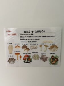 11月はキノコを探そう!というのもやっていて一時間程かけてキノコを探しました!笑
