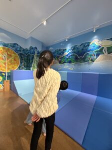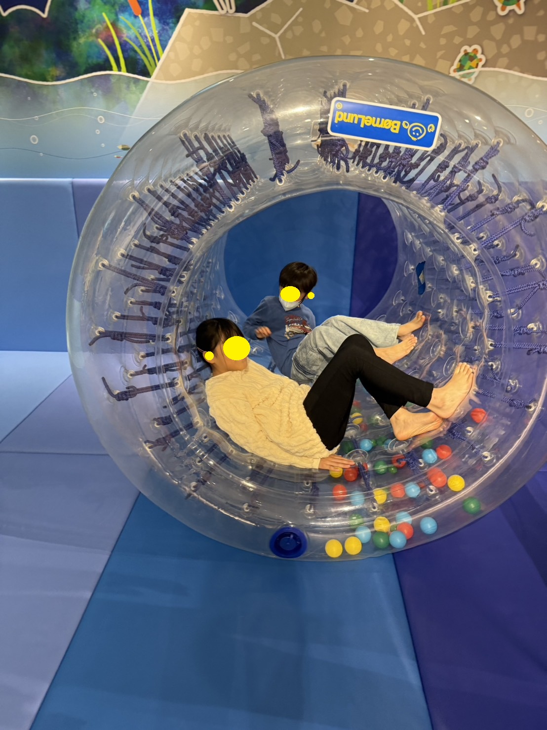 上の写真の水中ローリングはただ回って遊ぶだけではなく、平衡感覚を養い、集中力と筋力も鍛えてくれるそうです。ホールの中でバランスをとりながら進むのがとても難しそうでした☺
