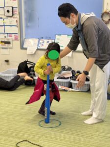 ぐるぐるバットをはじめとした、こういうあそびのことを感覚統合あそびといい、さまざまな感覚の偏りを整える効果が期待されているんですよ(^^)/