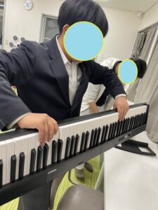 こんにちは。ひふみ吉田第二教室です。教室に電子ピアノが入りました!みんな夢中になって弾いていました。ピアノは目と手の供応と微細運動のトレーニングになります。加えて音感の良いお子さんが多いので繊細なメロディーを紡ぎだすことができます。苦手な事をできるようになることも大事ですが、得意なことをさらに伸ばしていくことも大事な療育の一つです。当事業所では得意なことを伸ばす療育もしています。
