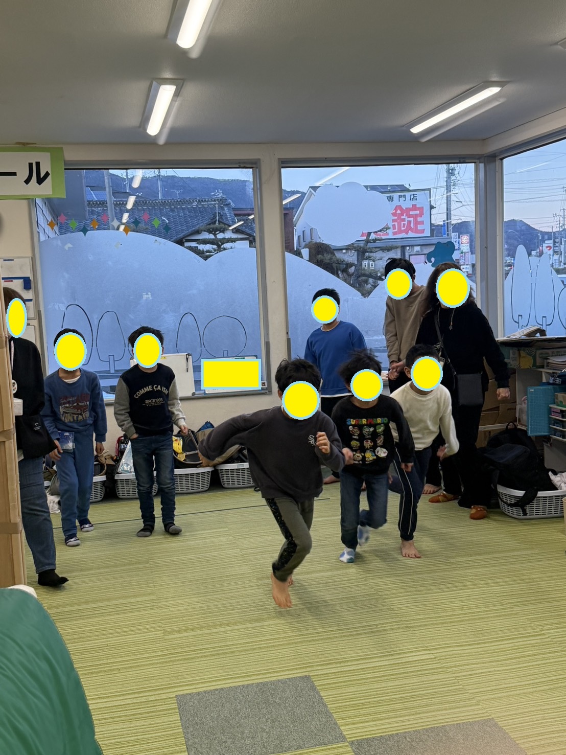 こんにちは。ひふみ吉田第二教室です。長野市内のほとんどの学校の新学期が始まりましたね。お正月気分を一新すべく、みんなで「だるまさんが転んだ」をしました。