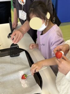 しかし、みんな動画を見てコツ掴み何回目かで上手なマシュマロいちごを完成させていました🍓✨