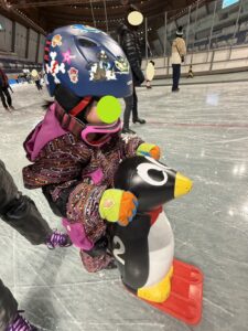 スケートが初めてのお友達はヘルパーペンギンを使用してすべることができました✨