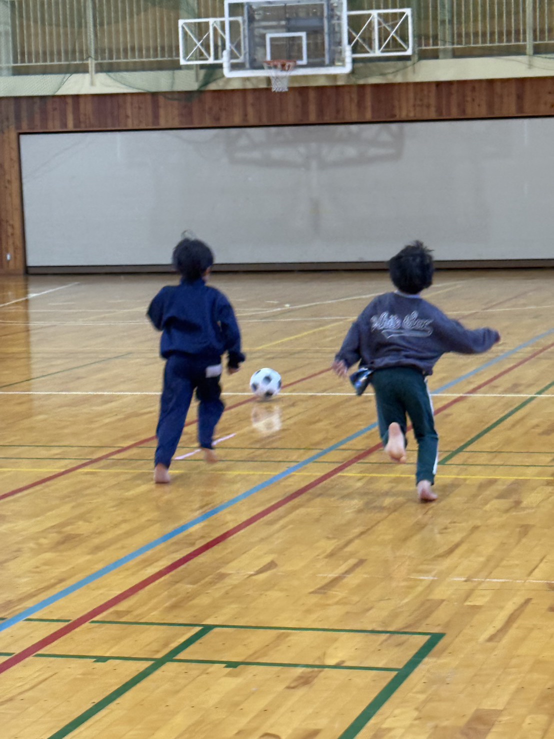 まずは定番のフットサル(サッカー)!全力でボールを追いかけてますね( *´艸`)