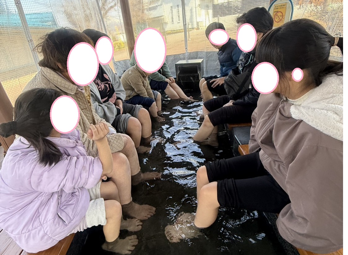 今日は皆で足湯に行きました。なんと1時間も座っていることができました。