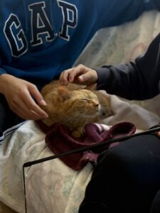 ネコちゃんもみんなに撫でてもらってうれしそうです。