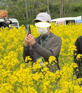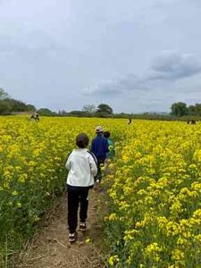 素晴らしい景色にみんな大喜び。迷路のような菜の花畑。