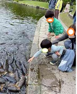 お花見を終えて今度はハイウェイオアシスで鯉を見たり、アスレチックで遊んだり、