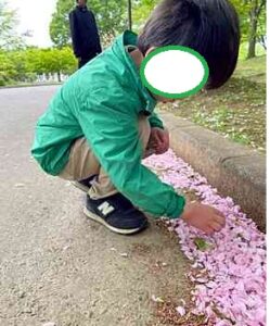 大道芸人の芸に拍手を送ったり、桜の花びらが奇麗でつかんで桜吹雪を浴びたり♪