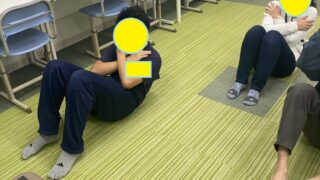 こんにちは。ひふみ吉田第二教室です。今日はダンス最終日でした。みんな頑張ったのでごほうびダンスは筋トレをしました。みんなで動画を見ながら頑張って筋トレをしていました。心地よい疲労感のひとときでした。